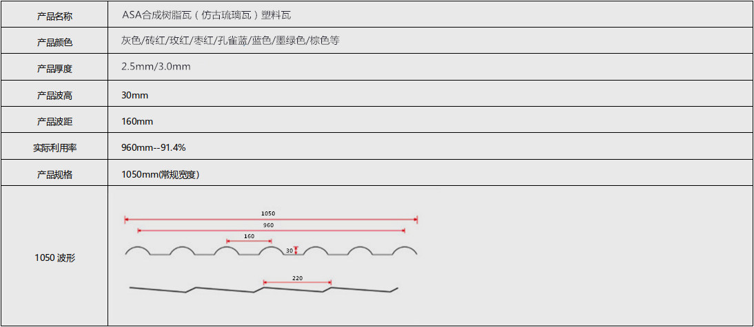 ASA合成樹脂瓦,采用超高耐候工程樹脂ASA,通過先進的共擠技術(shù)和特殊的成型工藝生產(chǎn)出的一種新型屋面材料。其具有仿古琉璃外觀,色彩鮮艷持久,主要應用于高檔屋面,別墅屋面,園林樓閣,仿古建筑,平改坡工程等屋面領域。